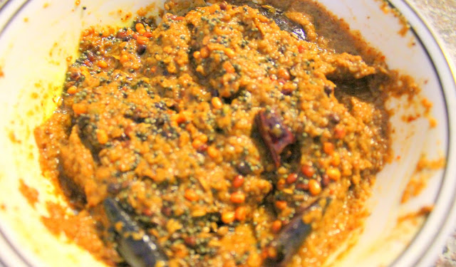 2. Grind this to fine paste with the tamarind paste, salt. add little water if needed